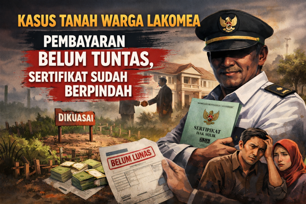 “Yang kami tahu, pak desa yang urus. Katanya lahan itu untuk kolega bupati. Tapi sertifikat sudah dipegang, sementara pembayaran belum lunas,” ungkap seorang warga Lakomea kepada media ini pada Desember 2025 lalu.
