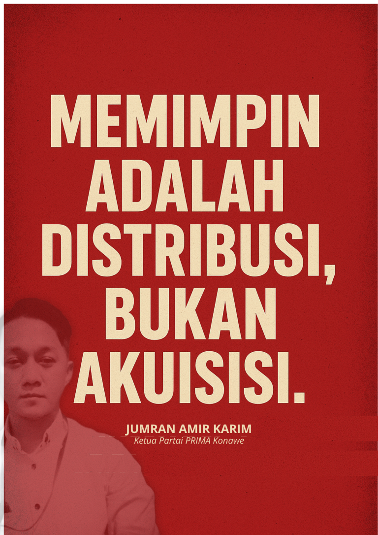 “Memimpin adalah Distribusi, Bukan Akuisisi” Oleh: Jumran Amir Karim (Ketua Partai PRIMA Konawe) -- Dalam banyak konteks pemerintahan, kekuasaan terkadang...